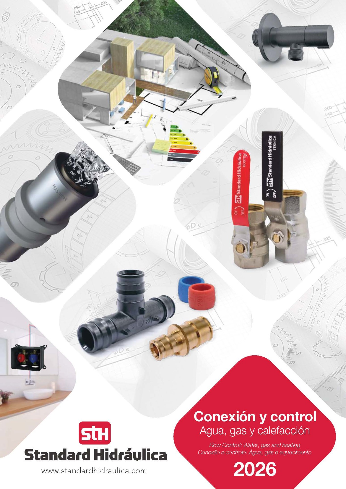 Conexiones, sistemas y regulación para agua y gas, calefacción, control y seguridad, calidad del agua y grifería.