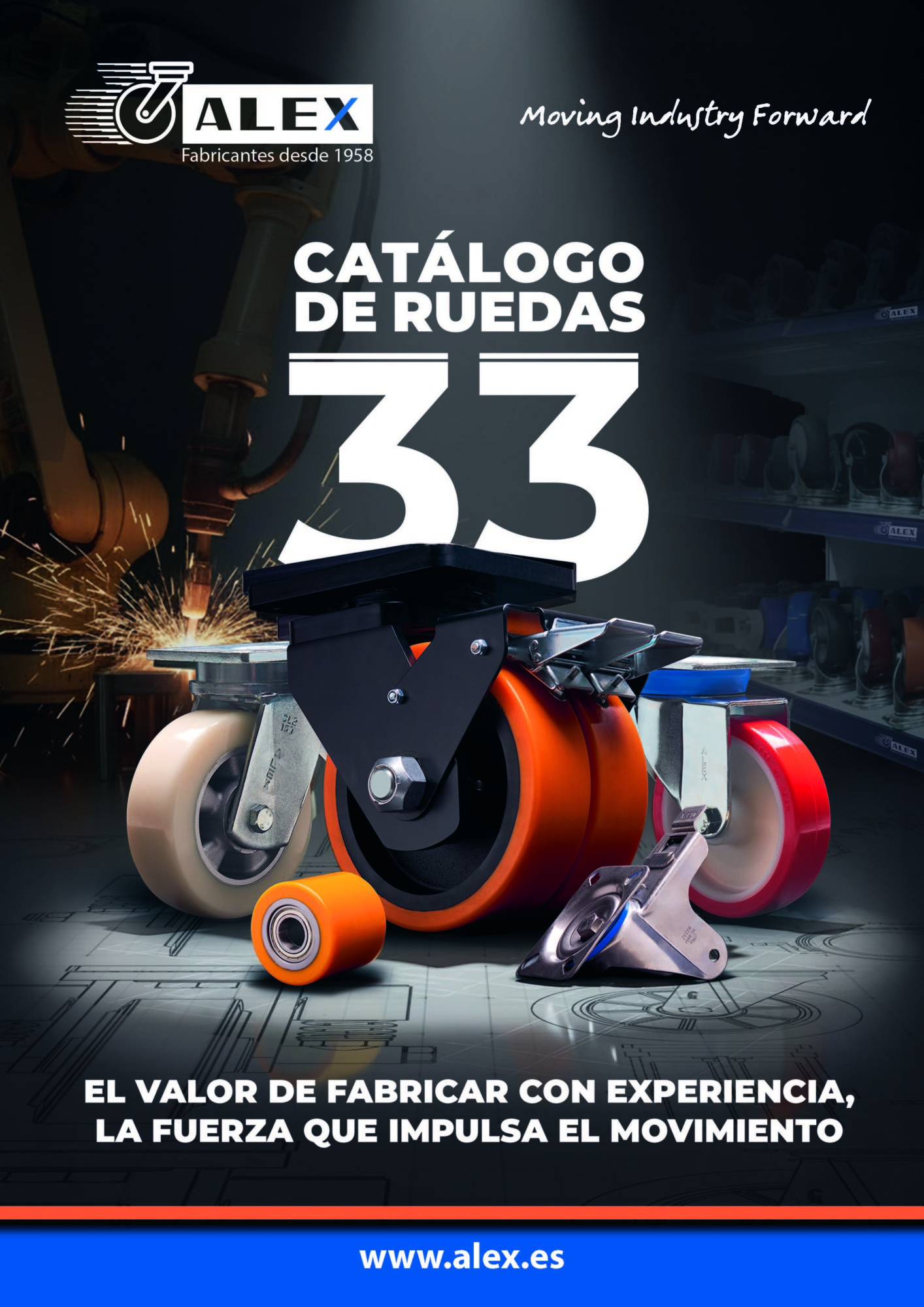 Ruedas Alex es una empresa española fabricante de ruedas para todo tipo de aplicaciones. Fundada en el 1958 y certificada con la ISO 9001. Exportadora en Europa, África y América. Cuenta con más de 2900 referencias fabricadas en sus propias plantas de producción en el área de Barcelona. Todas sus ruedas llevan el sello “Fabricado en España”.